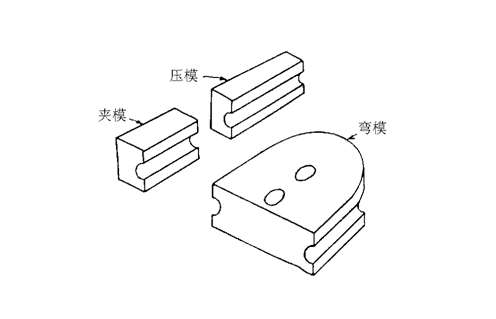 主要基本工裝——開了槽的彎模、夾模和壓模組成彎管必須的主要工裝(見圖3)。彎模防止管件變形并幫助形成指定的彎曲半徑。夾模在彎曲過程中固定管件位置。壓模將管子送入彎模。